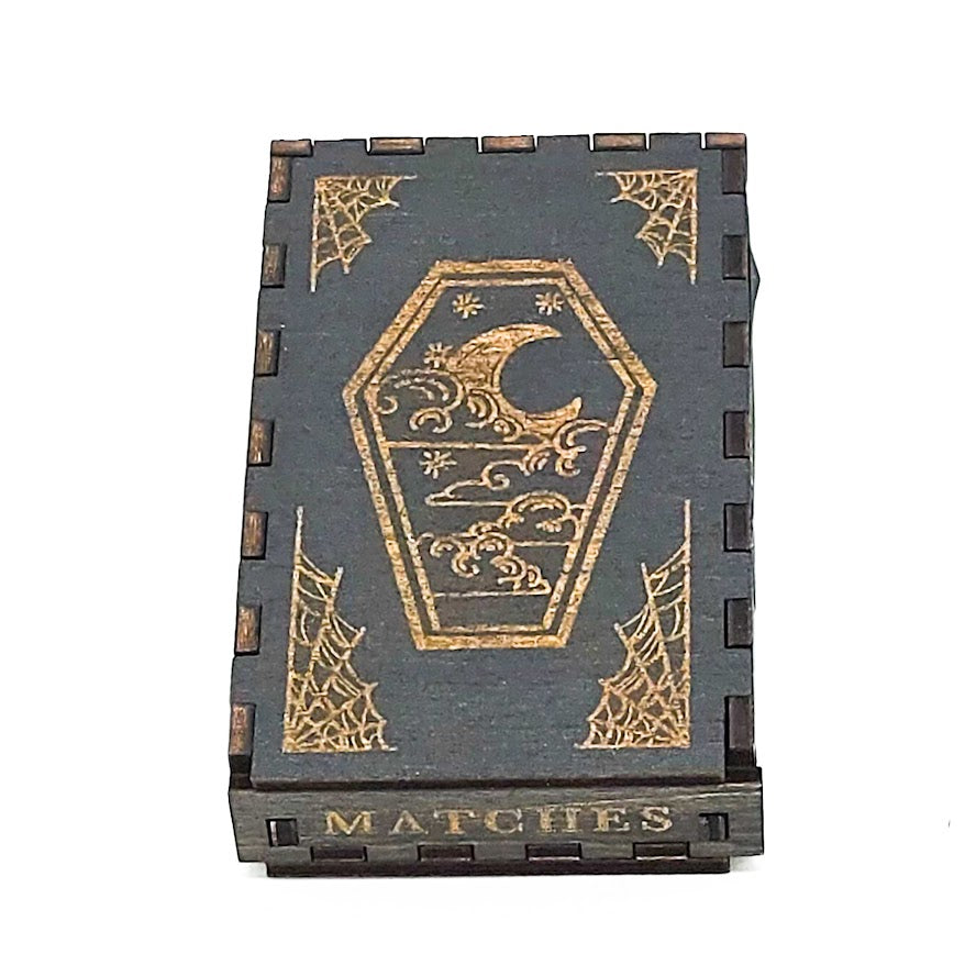 Spark magic with our Custom Engraved Black Matchbox. This isn't just a box of matches; it's a handcrafted, engraved wooden vessel filled with striking black matches. Ideal for all your lighting needs—from spell candles to campfires—it brings a touch of gothic charm and practical whimsy to your space.
