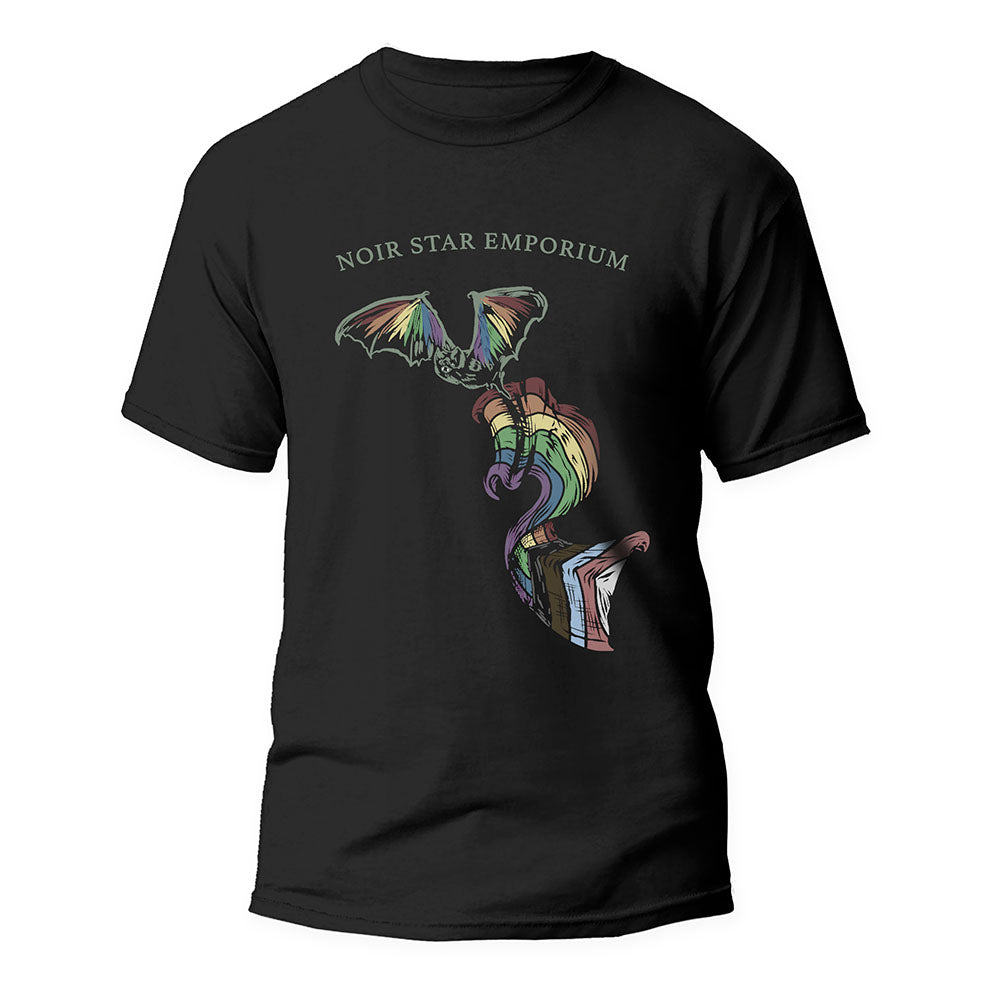 NSE Bat waving the allied flag, showing love and support for our LGBTQ+ friends. Printed on a soft, lightweight, and durable quality of our classic short-sleeve tee, crafted from 100% ring-spun cotton.
